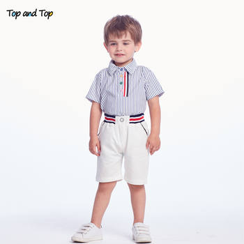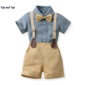 بلوزات Top الصيف الاطفال طفل صبي دعوى رسمية قصيرة الأكمام مع قميص الحمالات السراويل ملابس كاجوال الزي شهم مجموعة 2 قطعة