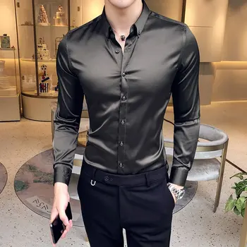 2024 Men’s Shirt Neckline Embroidery Long Sleeve Casual Slim Men’s Dress Shirt Solid Color Formal Business Social Clothing Top