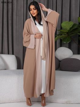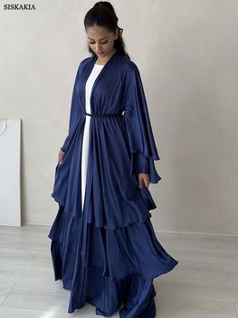 Siskakia Saudi Women Open Kimono Aabyas With Sashes Muslim Solid Modest 3 Layers Cardigan African Moroccan Kaftan Islam Clothing