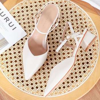 النمط البريطاني النساء الصنادل بولي 4.5 سنتيمتر كعب مربع أشار تو مشبك حزام الجدة الشارع نمط أحذية الصيف الموضة للنساء