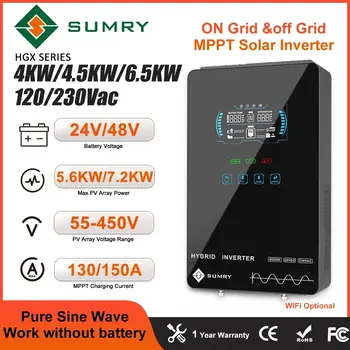 SUMRY 4KW 4.5KW 6.5KW Off Grid Solar Inverter 24v 110/120v/230VPure Sine Wave MPPT Solar Charge 55-350VDC LCD Hybrid Inverter