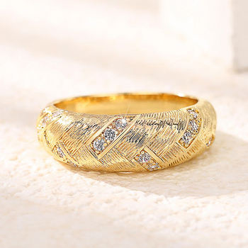 Huitan Fashion Design Female Finger Rings Gold Color Shiny Cubic Zirconia Twist Shaped Modern Trendy Wedding Jewelry for Women