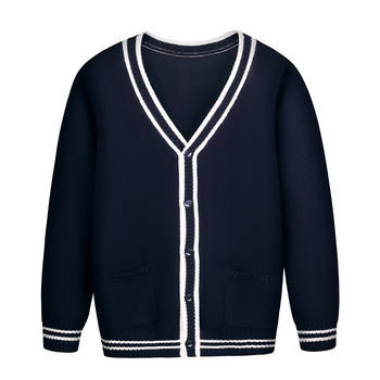 انكلترا نمط محبوك سترة Teenage بنين بنات واحدة الصدر الأزرق الداكن طويلة الأكمام بالأزرار زي مدرسي معاطف جديد