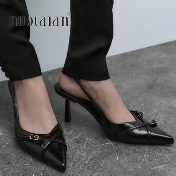 Shoes Black Leather Shoes Woman Pumps Slingbacks Pointed Toe High Heels Stiletto Sexy dress Shoes Women Heels Plus Size 42