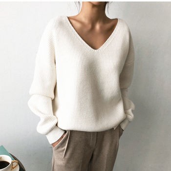 v neck Womens Sweater Female Oversized Knitted Fall 2024 Clothing Pullover Winter Autumn New Fashion Korean Style Ladies White