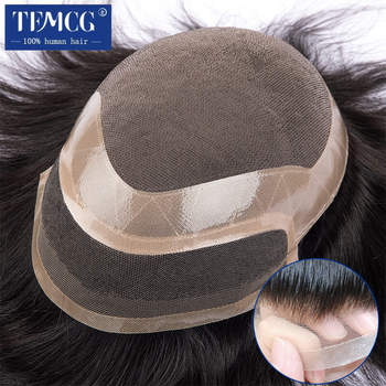 مشبك رجالي على الشعر أحادي وبولي يوريثان مع الدانتيل الجبهة دائم للشعر الاصطناعي للرجال 100% شعر بشري مستعار الرجال شعر مستعار أنظمة العادم