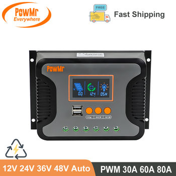 30A 60A 80A PWM Solar Charger Controller 12V 24V 36V 48V Auto Max PV 100Vdc with Dual USB Port Backlight LCD Display Regulator