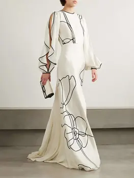 Yeezzi Female British Style Flower Printed Party Evening Dresses 2024 New Spring Summer Ruffled Sleeve Falbala Elegant Prom Gown