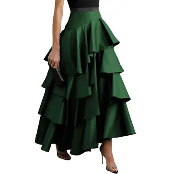 Yeezzi Female Falbala High Waisted A-Line Skirts 2024 New Spring Summer Solid Color Fashion Elegant Party Evening Long Skirt