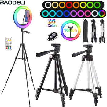 10in RGB Selfie مصباح مصمم على شكل حلقة ترايبود LED ملء ضوء التصوير حلقة حامل هاتف حامل دائرة مصباح Trepied تدفق YouTobe