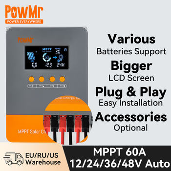 PowMr New 60A MPPT Solar Charge Controller Solar Battery Voltage Regulator For 12V 24V 36V 48V System POW-M60-MAX