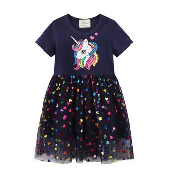 القفز متر الساخن بيع يونيكورن طباعة الصيف الأميرة حفلة توتو فساتين الطفل هدية عيد ميلاد الأطفال زي شبكة الفتيات