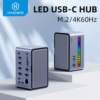Hagibis USB C Docking Station with Dual HDMI-compatible M.2 SSD Enclosure Ethernet 100W PD USB Hub SD/TF for Laptop Macbook Pro