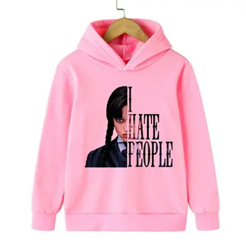 1990s children’s hoodies, Wednesday Adams sweatshirts, I hate people, cartoon clothing, children, girls, boys, never stop colleg