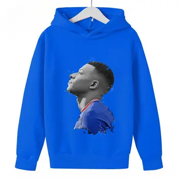 Spring and Autumn Blue Sweatshirt Sports Top for Boys and Girls Mbappe Printed Children’s Hoodie Kids Clothes Girls Hoodies
