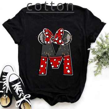 Minnie Children Cotton T-Shirts Letter A-Z Name Combination Disney Kawaii Cartoons Clothes Kids Little Boy Girl Tee Casual Tops