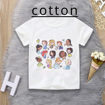 Unisex Summer Children’s Clothing Princess Cute Cartoon Boy And Girl T-shirt Aesthetics Fun Kid Top Crew Neck White Short Sleeve