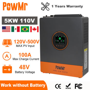 PowMr 5KW Split Phase Inverter 48V 110V On Grid Off Grid Pure Sine Wave Hybrid Solar Inverter with MPPT 100A Battery Charger