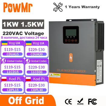 PowMr 1000W 1500W Hybrid Solar Inverter 12V 24V 220V Off Grid Pure Sine Wave Inverter Dual Output with MPPT 80A Solar Charger