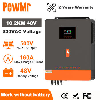 EU Stock PowMr 10.2KW Hybrid Solar Inverter 48V 230V On Grid Off Grid Pure Sine Wave Inverter MPPT 160A Solar Battery Charger