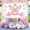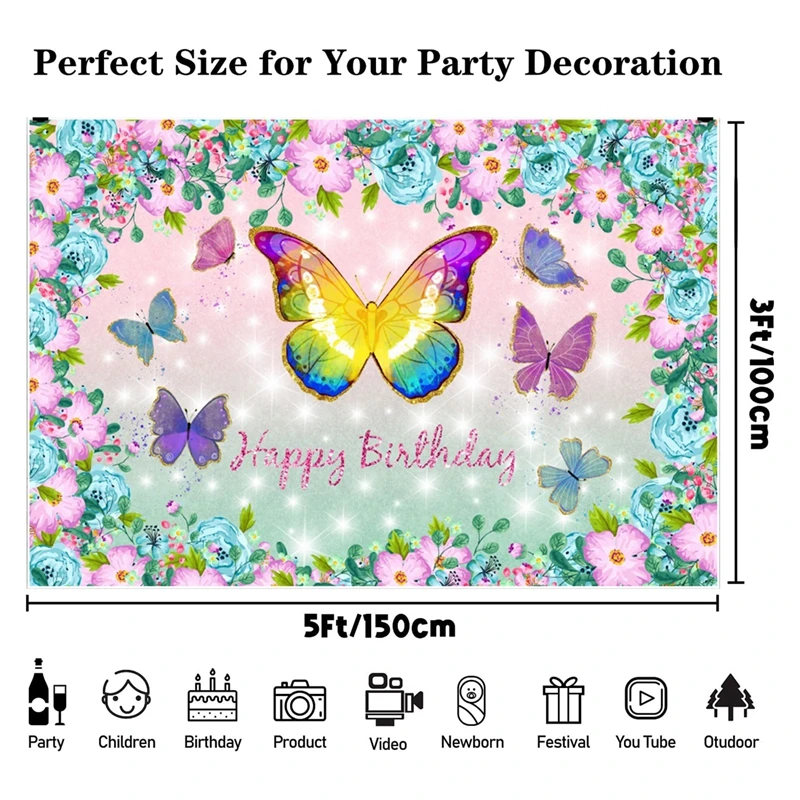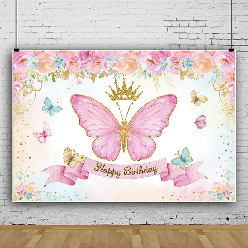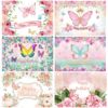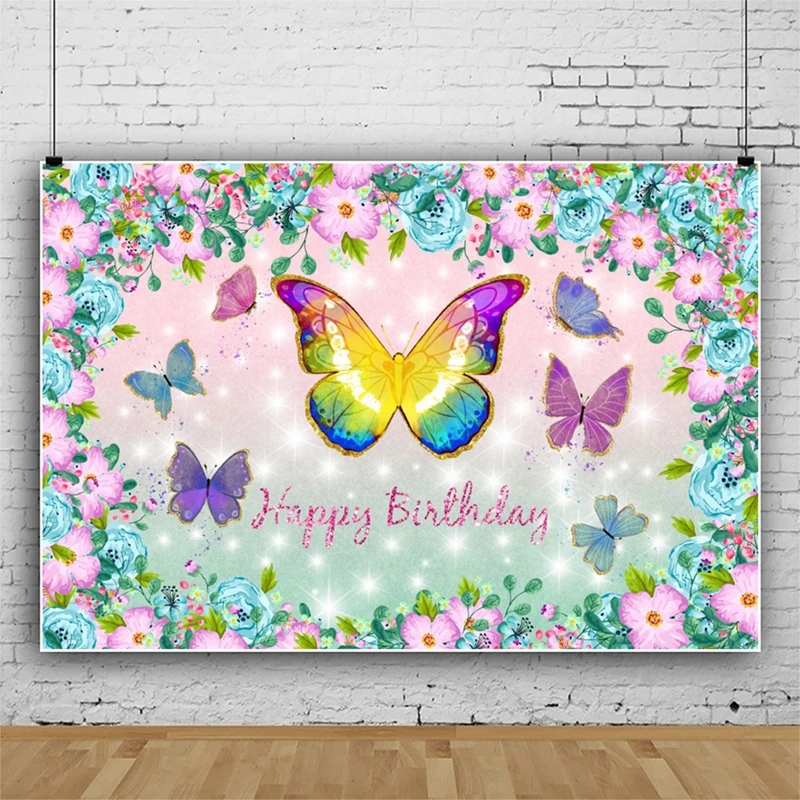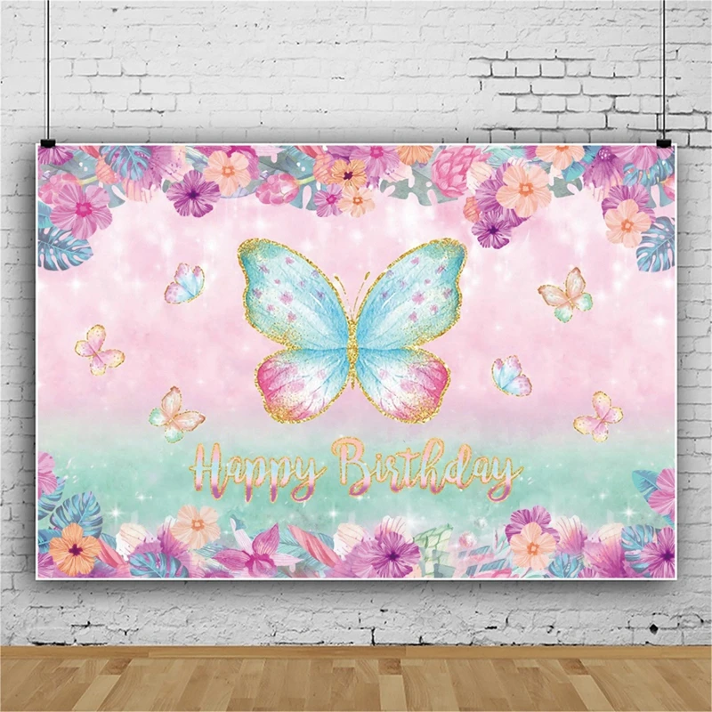 QIFU فراشة عيد ميلاد خلفية راية الزهور الجنية فراشة الزفاف حفلة عيد ميلاد ديكور الاطفال الفتيات استحمام الطفل