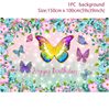 QIFU فراشة عيد ميلاد خلفية راية الزهور الجنية فراشة الزفاف حفلة عيد ميلاد ديكور الاطفال الفتيات استحمام الطفل