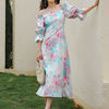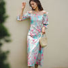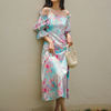QOERLIN واحد الكتف نفخة الأكمام فستان الإناث مائل الرافعة الفرنسية قصر فستان حفلة المرأة الصيف طباعة الأزهار ميدي فستان S-XL