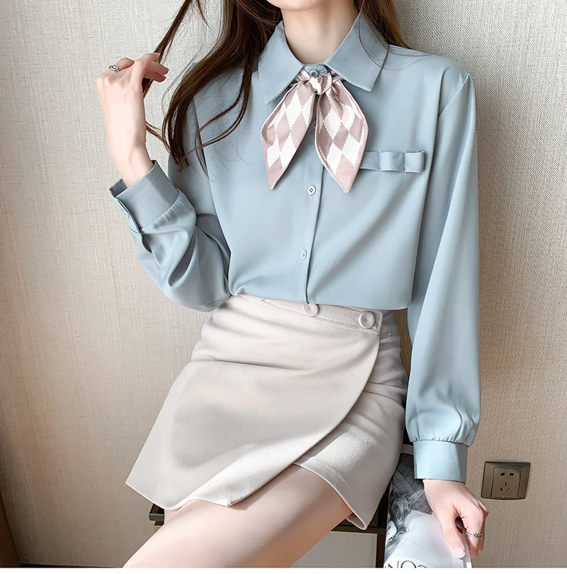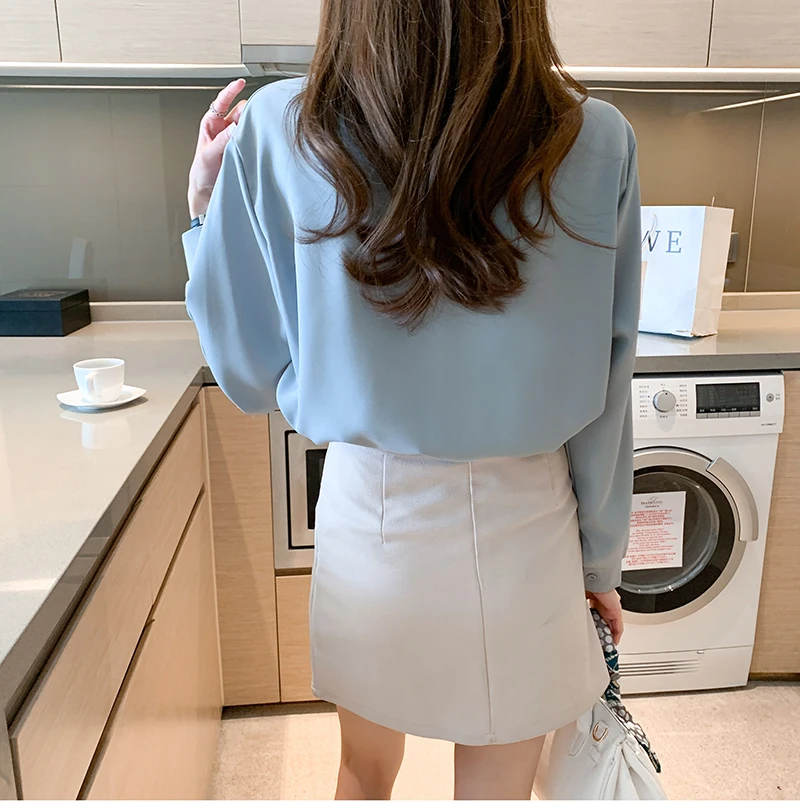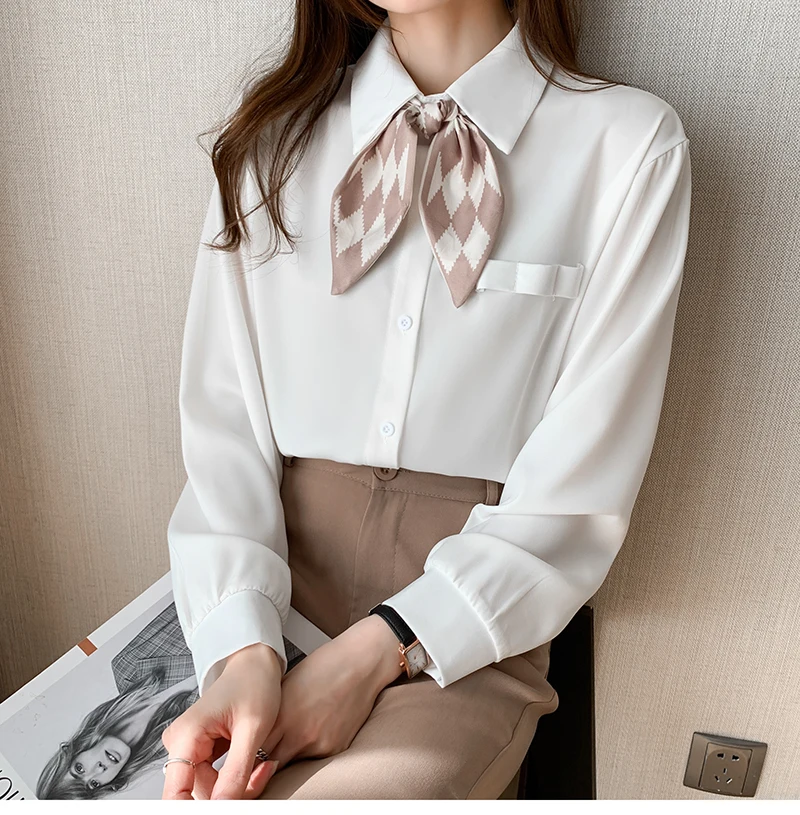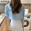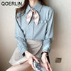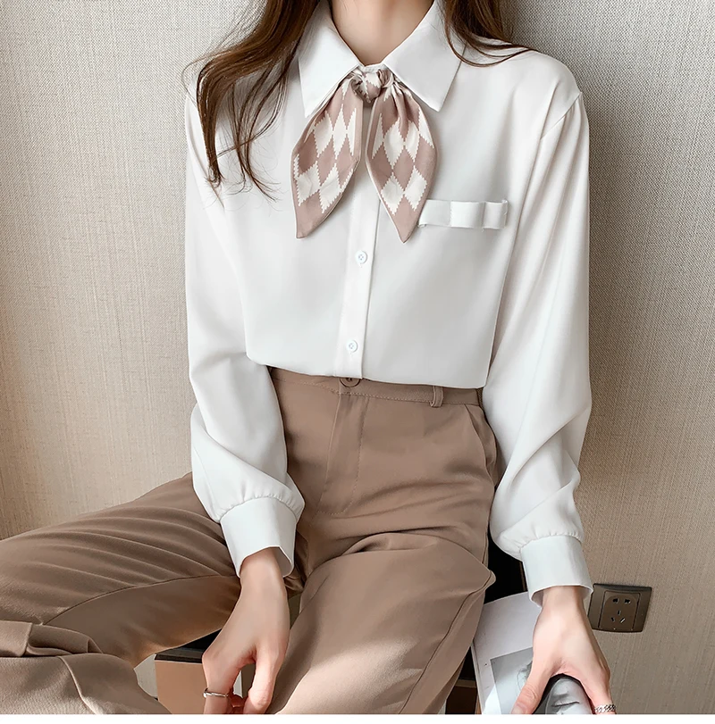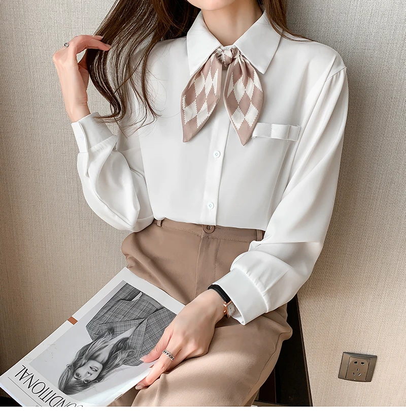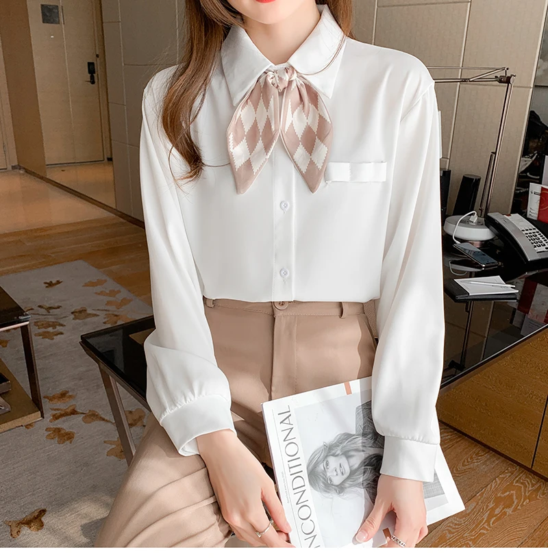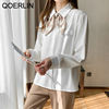 QOERLIN أنيقة الأبيض بووتي قميص المرأة ربيع الخريف موضة رفض طوق بلوزة طويلة فانوس كم بلايز قميص S-2XL