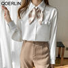 QOERLIN أنيقة الأبيض بووتي قميص المرأة ربيع الخريف موضة رفض طوق بلوزة طويلة فانوس كم بلايز قميص S-2XL