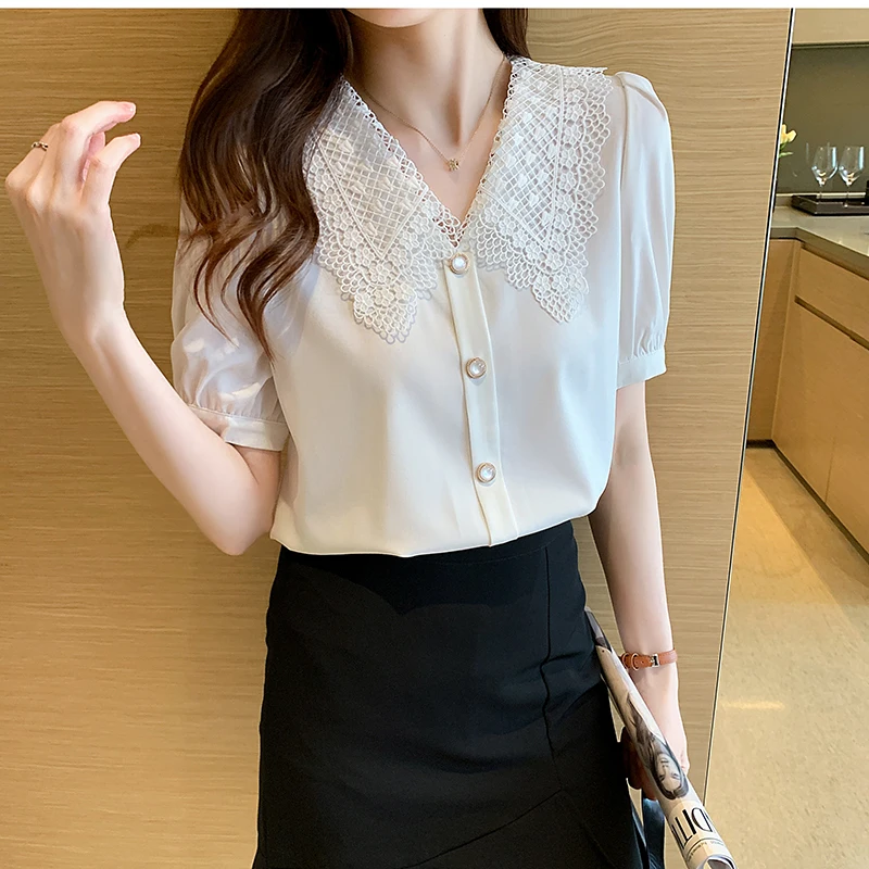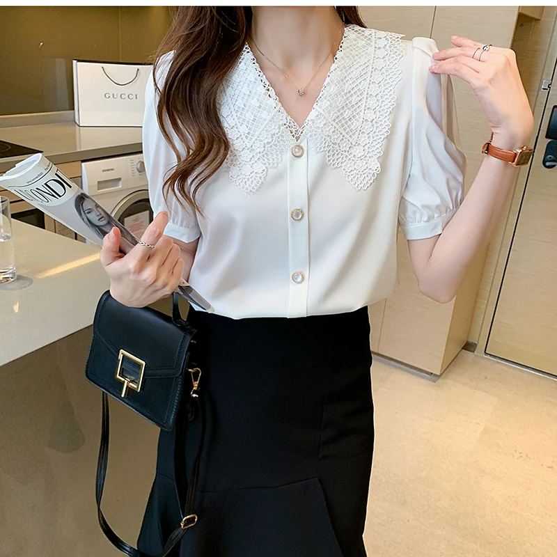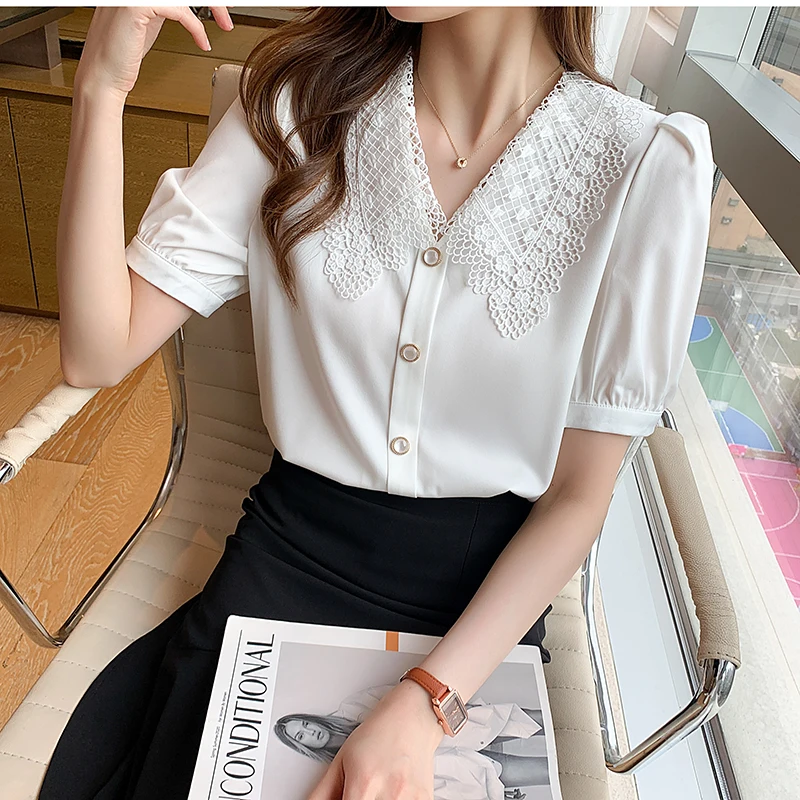 White Summer Shirts Office Ladies