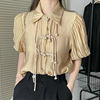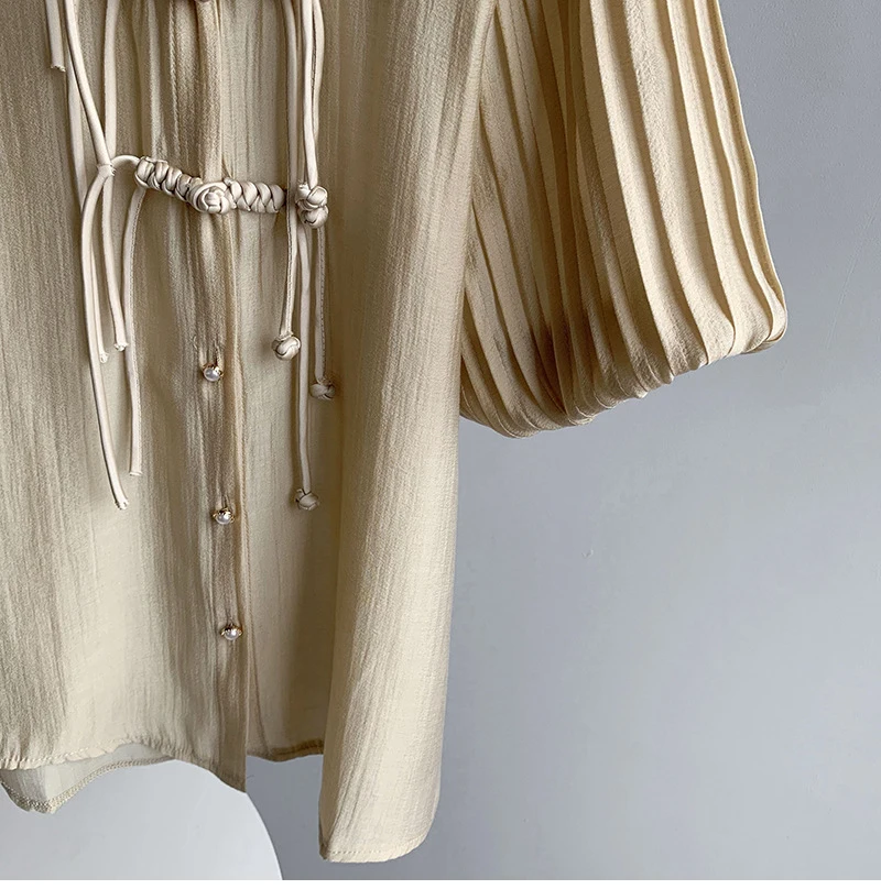 QOERLIN الصيف مايكرو شفافة المرأة قبالة الكتف قمصان فضفاضة واقية من الشمس طويلة الأكمام بلايز بلوزة واحدة الصدر سترة