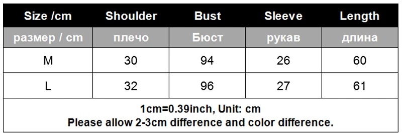 الحجمعبر الكتف (سم)عرض الصدر (سم)طول الكم (سم)الجسم طول