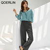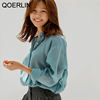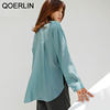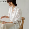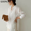 QOERLIN بلوزات بيضاء قميص واحد الصدر امرأة بدوره إلى أسفل طوق طويلة الأكمام أزرار القمم أنيقة أنيقة أنيقة النساء الملابس