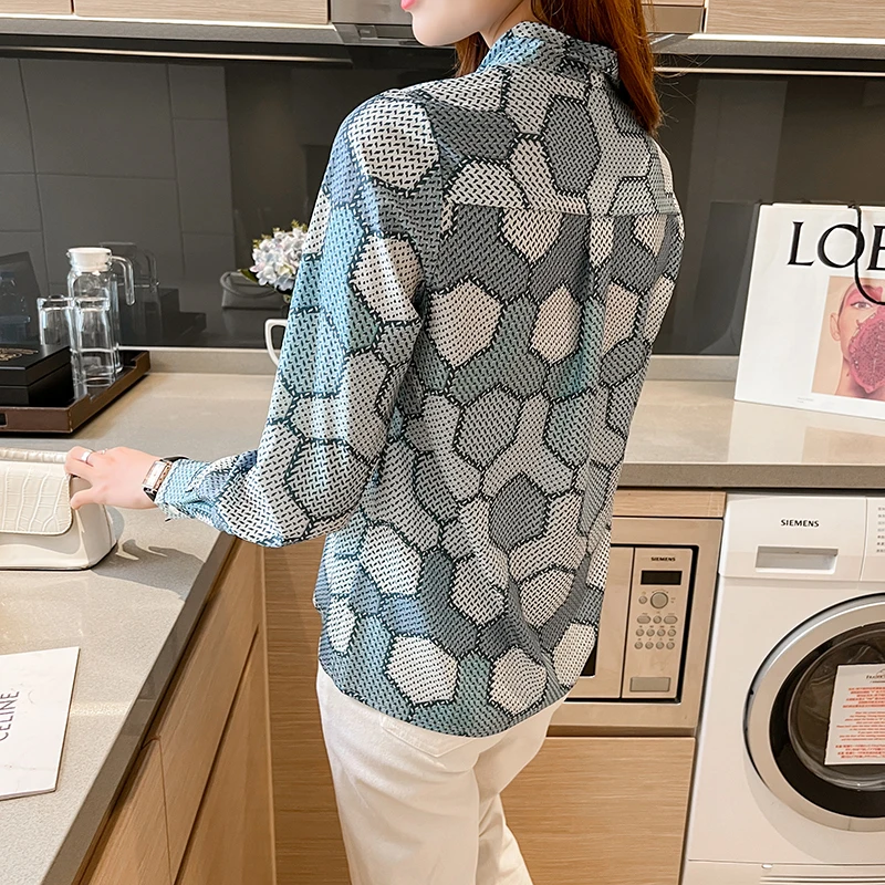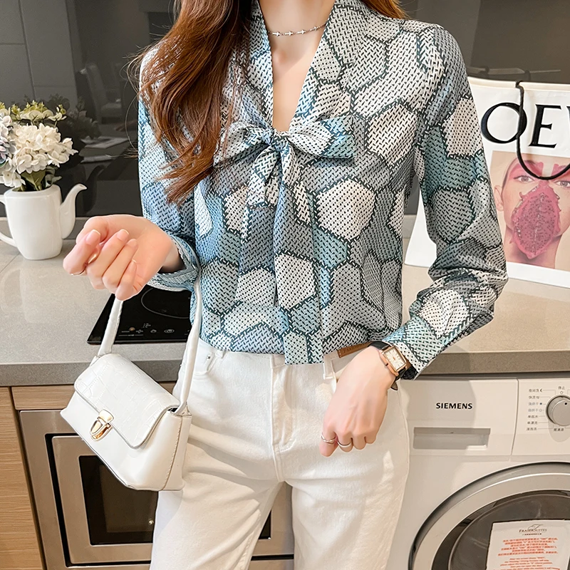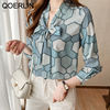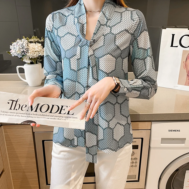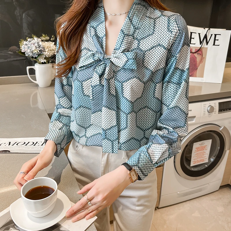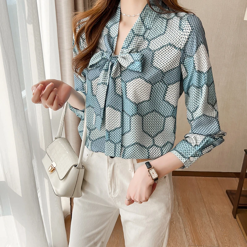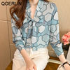 QOERLIN بلوزة النساء القوس قميص طويل الأكمام فضفاضة السيدات مكتب عادية 2022 الربيع بلايز فام شيك أنيق الحرير القمصان