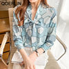 QOERLIN بلوزة النساء القوس قميص طويل الأكمام فضفاضة السيدات مكتب عادية 2022 الربيع بلايز فام شيك أنيق الحرير القمصان