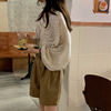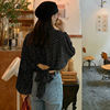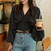 QOERLIN بلوزة سوداء برقبة على شكل V للسيدات قمصان برباط وأكمام طويلة موضة كورية كم فانوس فضفاض أبيض غير رسمي قمصان علوية قصيرة