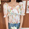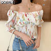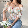 QOERLIN بلوزة سوداء برقبة على شكل V للسيدات قمصان برباط وأكمام طويلة موضة كورية كم فانوس فضفاض أبيض غير رسمي قمصان علوية قصيرة
