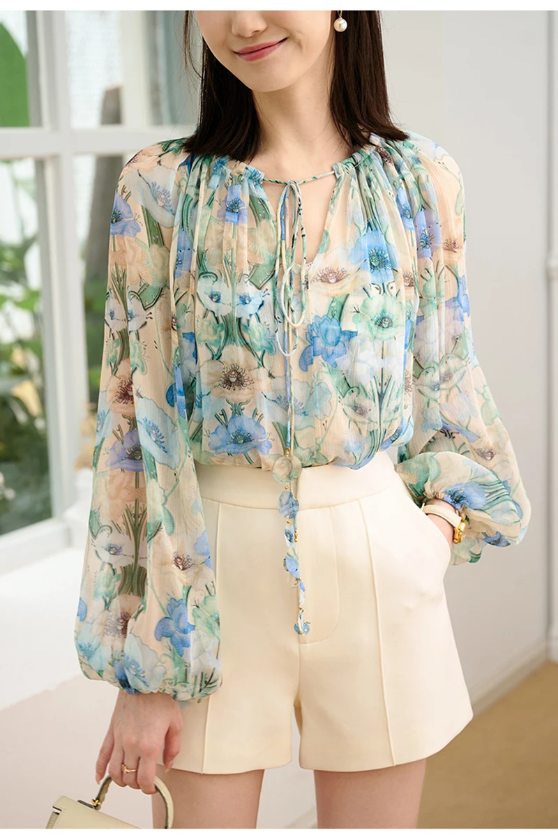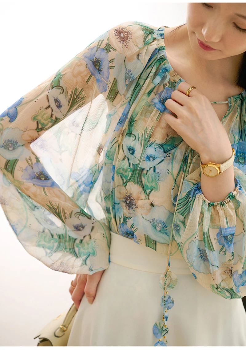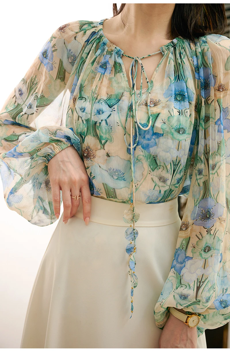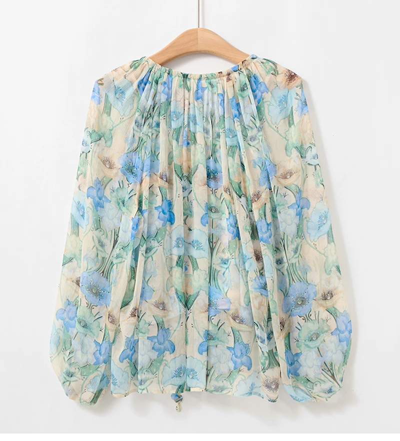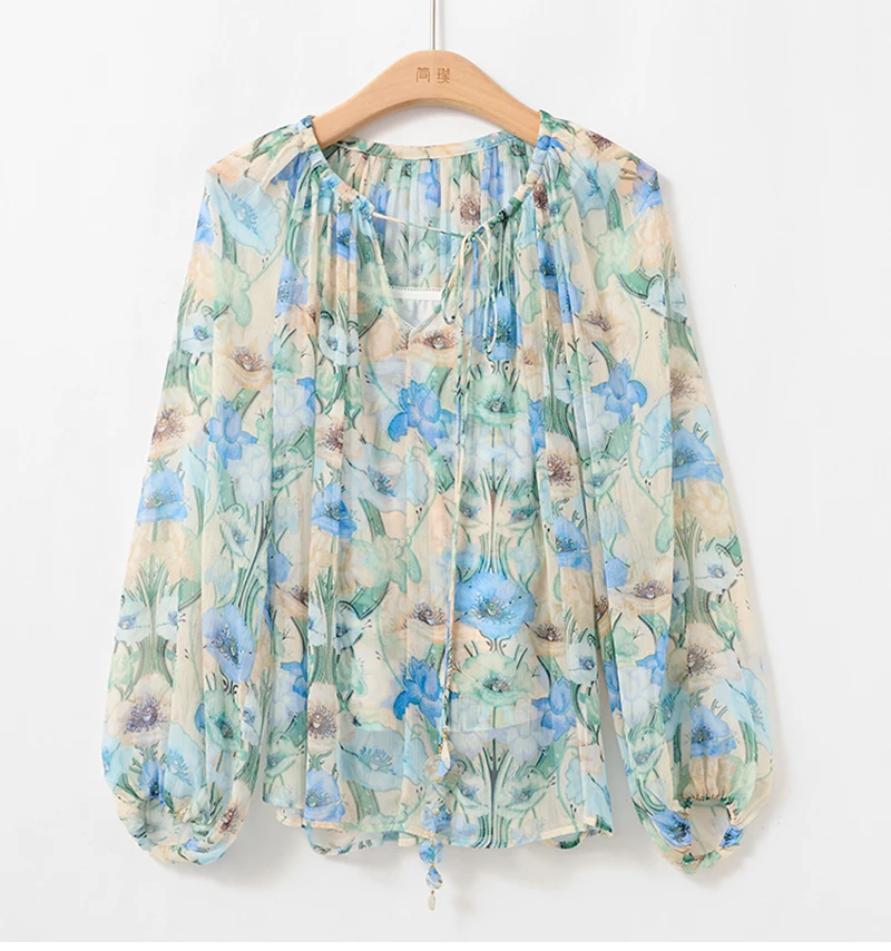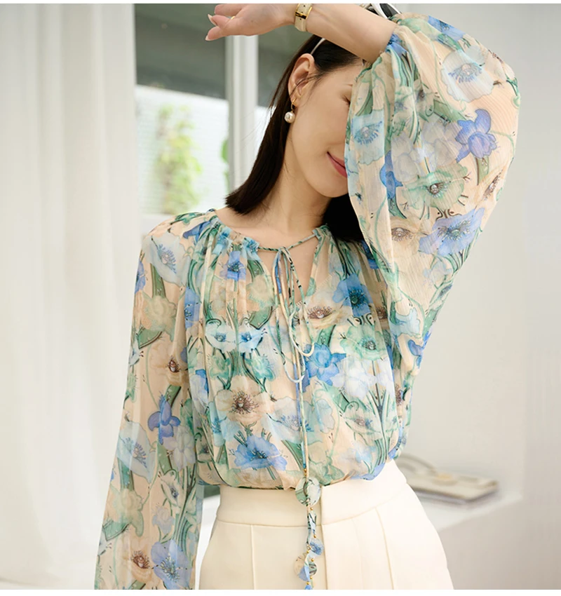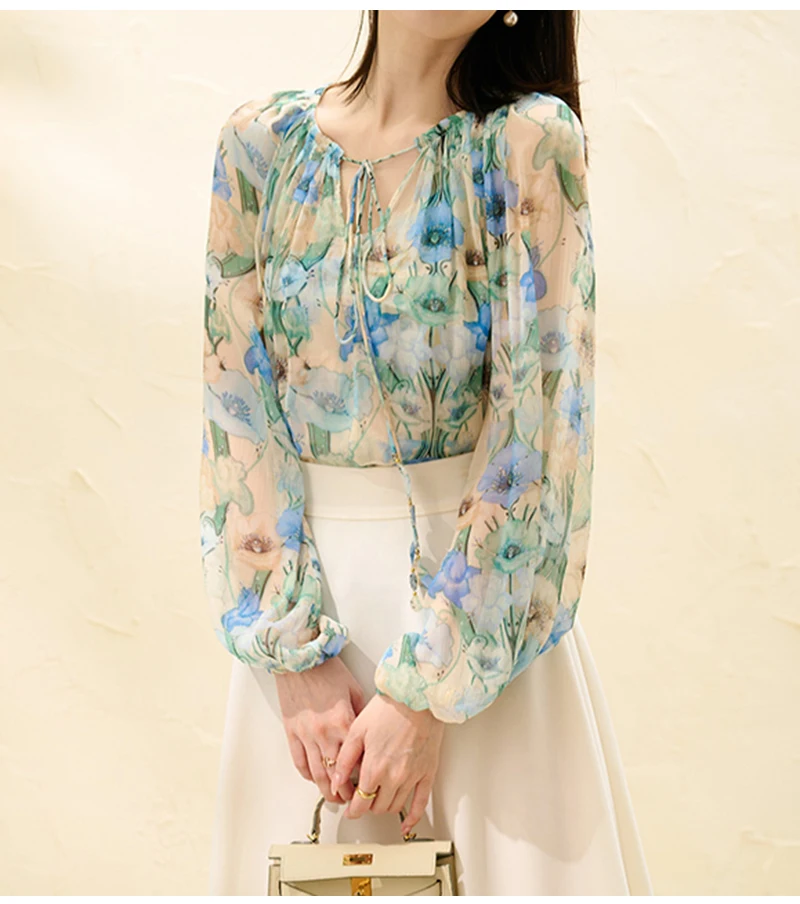 QOERLIN بلوزة و قميص قصير 2 قطعة بلايز س الرقبة الدانتيل يصل بلوزات أنيقة قمصان طويلة الأكمام نفخة كم الربيع الخريف قميص الموضة