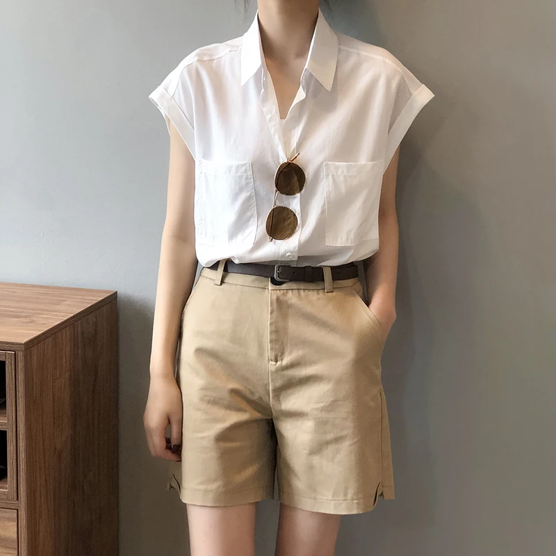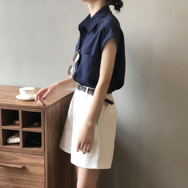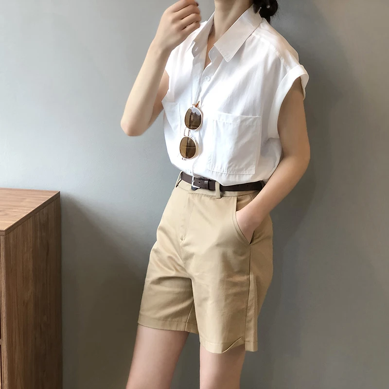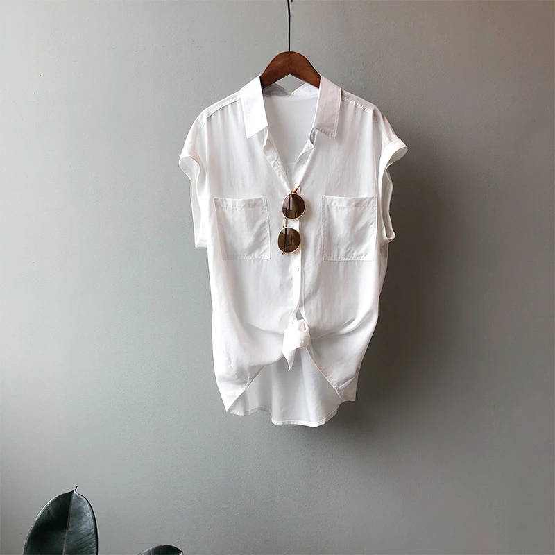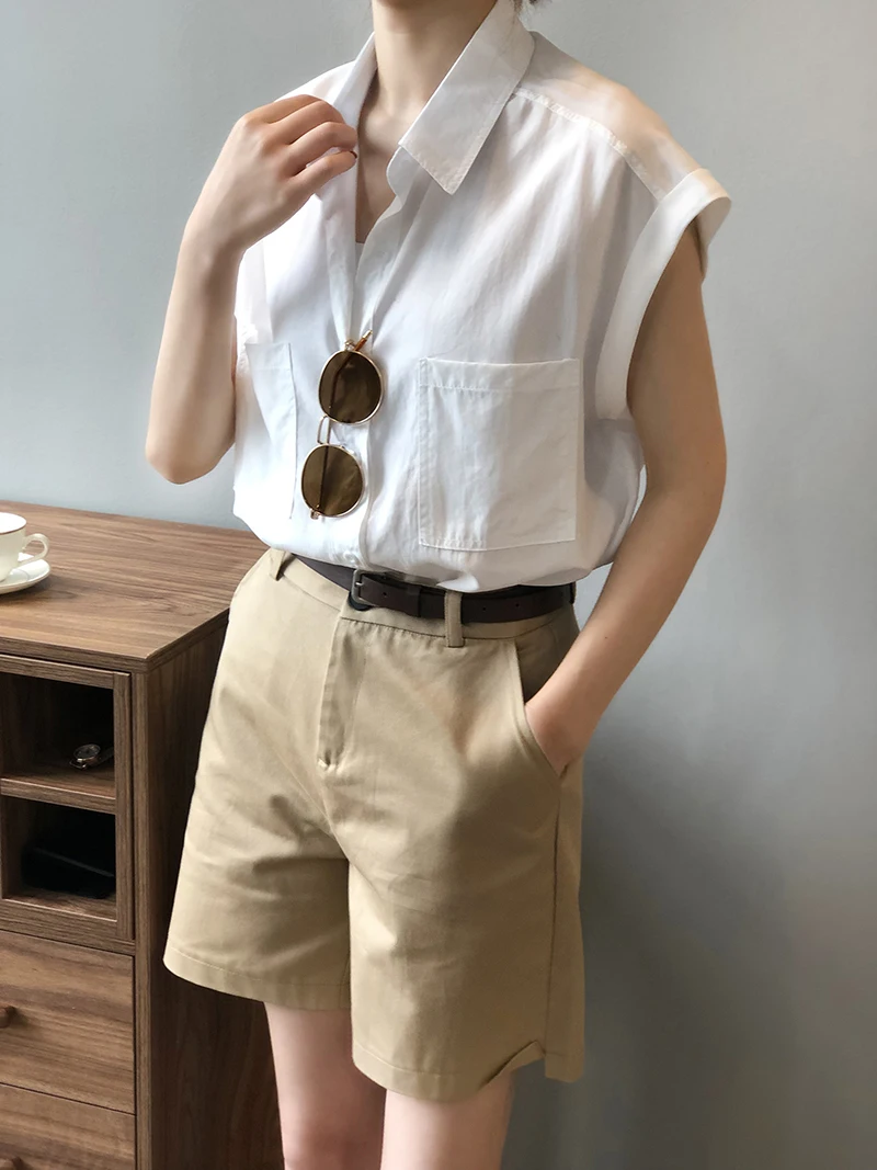 QOERLIN تونك قميص حريمي بدوره إلى أسفل طوق واحد الصدر بلوزات بسيطة ملابس الشارع الشهير بلا أكمام تانك القمم بنات فضفاض 2021