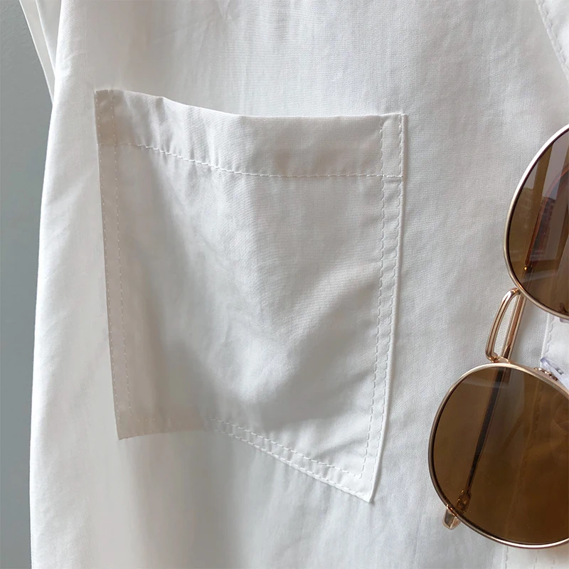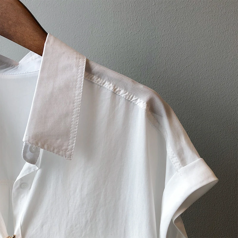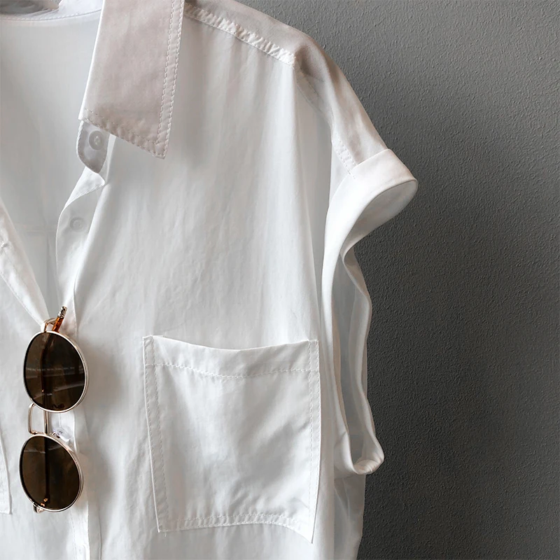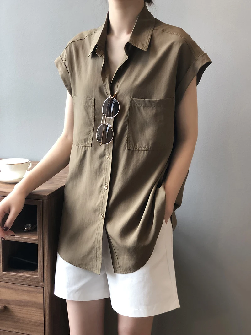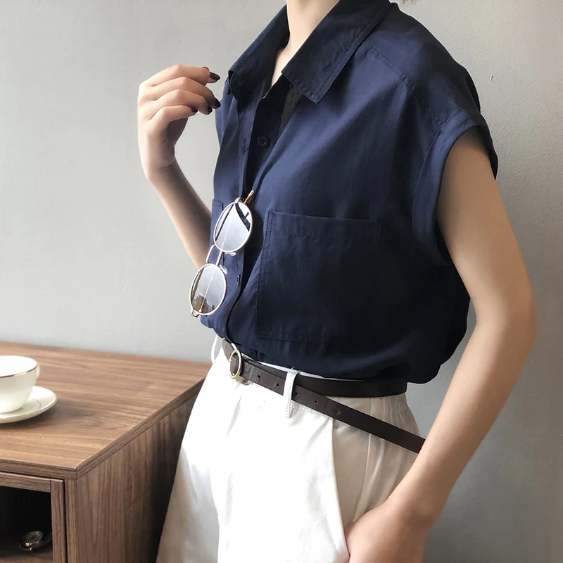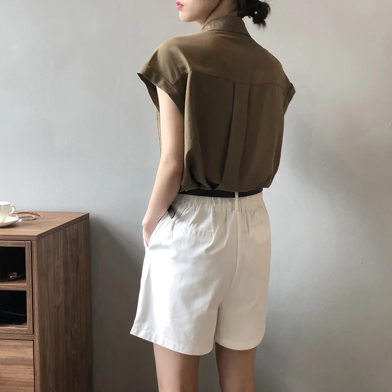 QOERLIN تونك قميص حريمي بدوره إلى أسفل طوق واحد الصدر بلوزات بسيطة ملابس الشارع الشهير بلا أكمام تانك القمم بنات فضفاض 2021