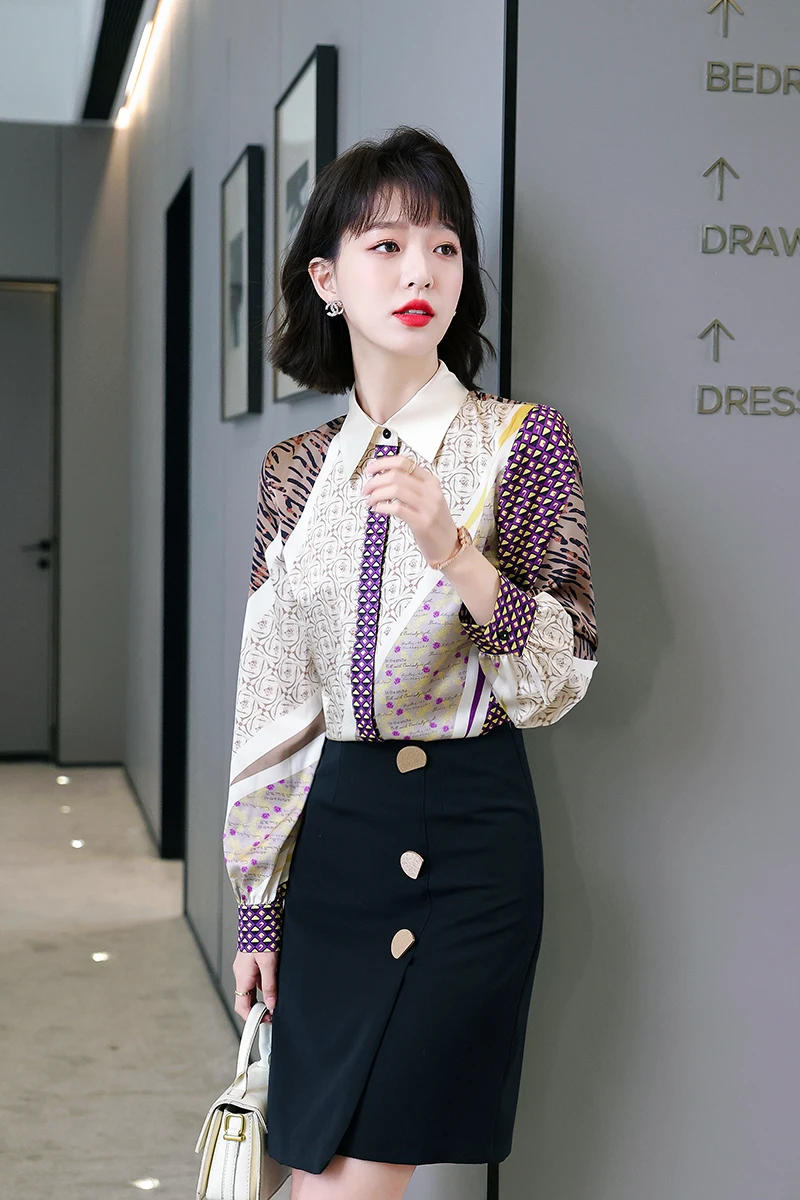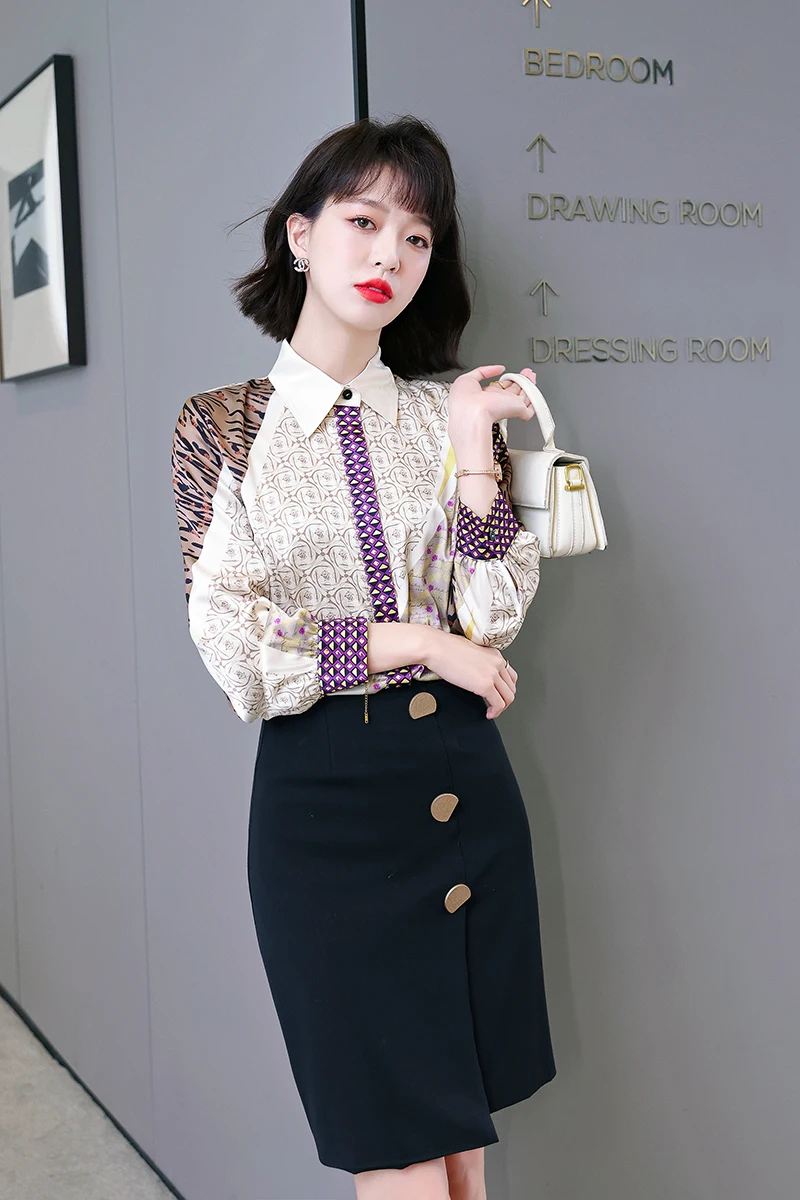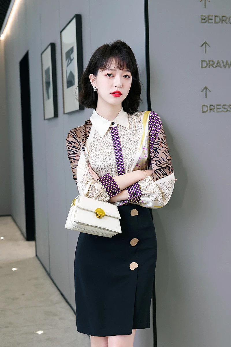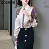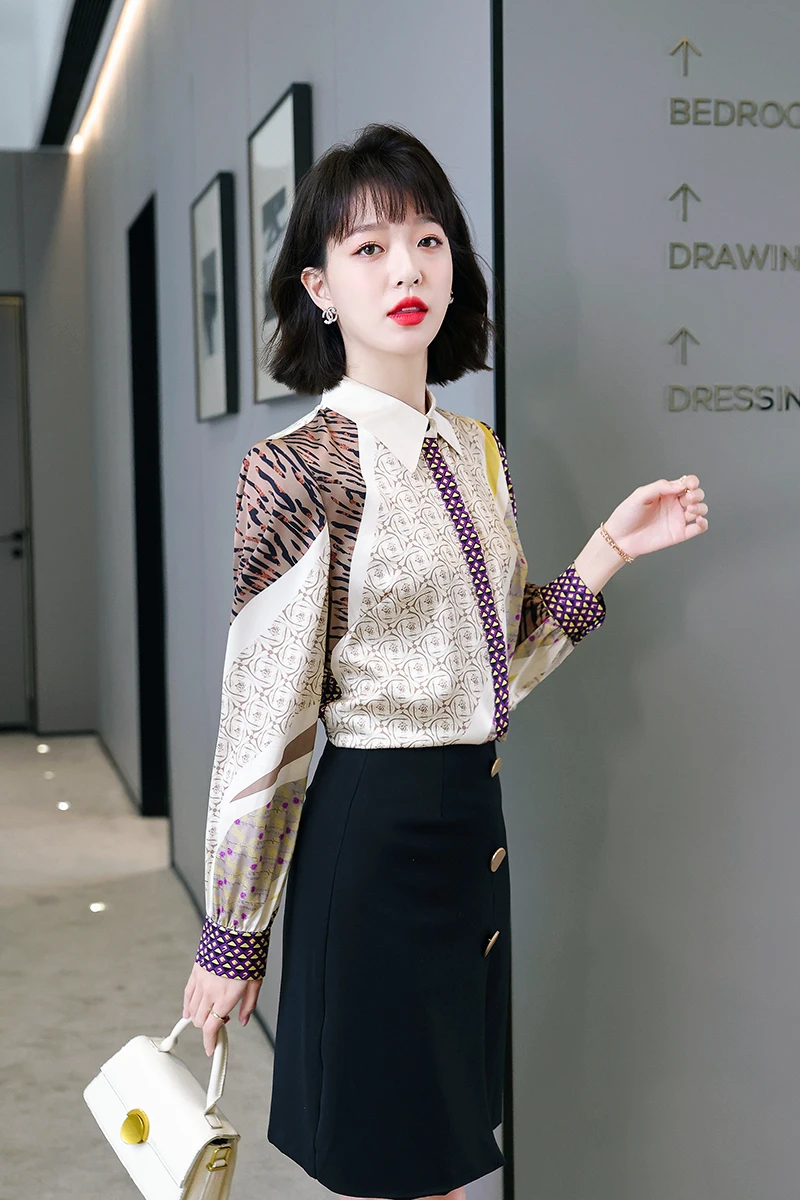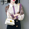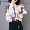 QOERLIN جديد مكتب سيدة Blusa Tops طباعة بلوزات بسيطة أنيقة الشيفون المرأة البلوزات الكورية شيك كم طويل القميص عادية M-2XL