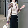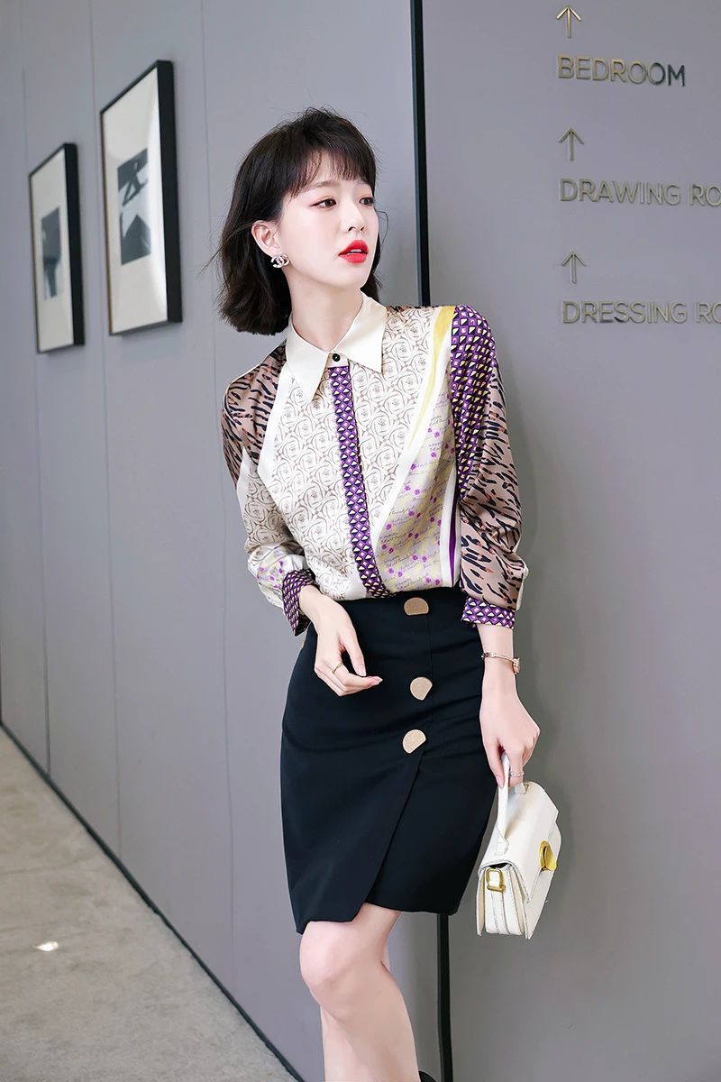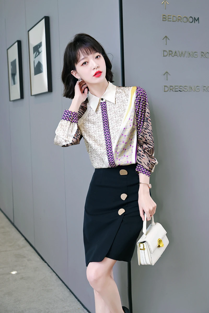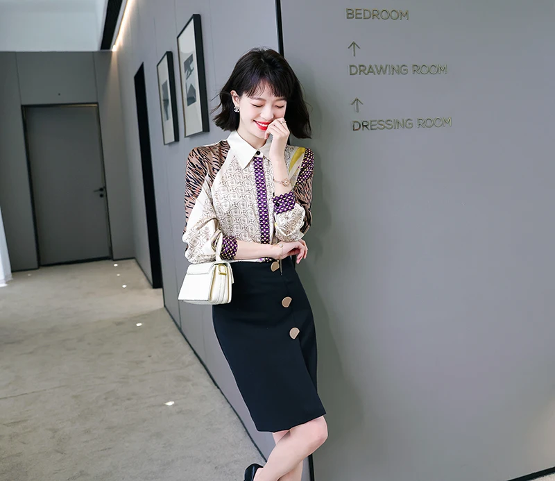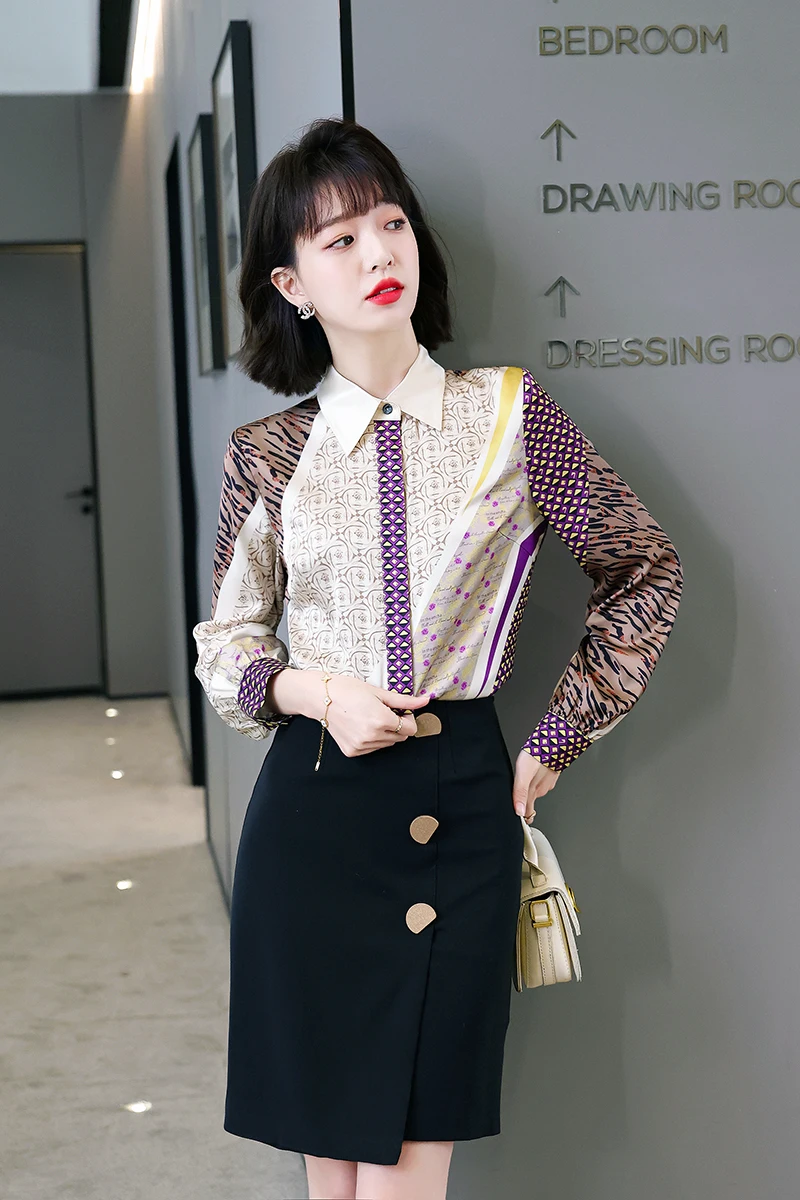 QOERLIN جديد مكتب سيدة Blusa Tops طباعة بلوزات بسيطة أنيقة الشيفون المرأة البلوزات الكورية شيك كم طويل القميص عادية M-2XL
