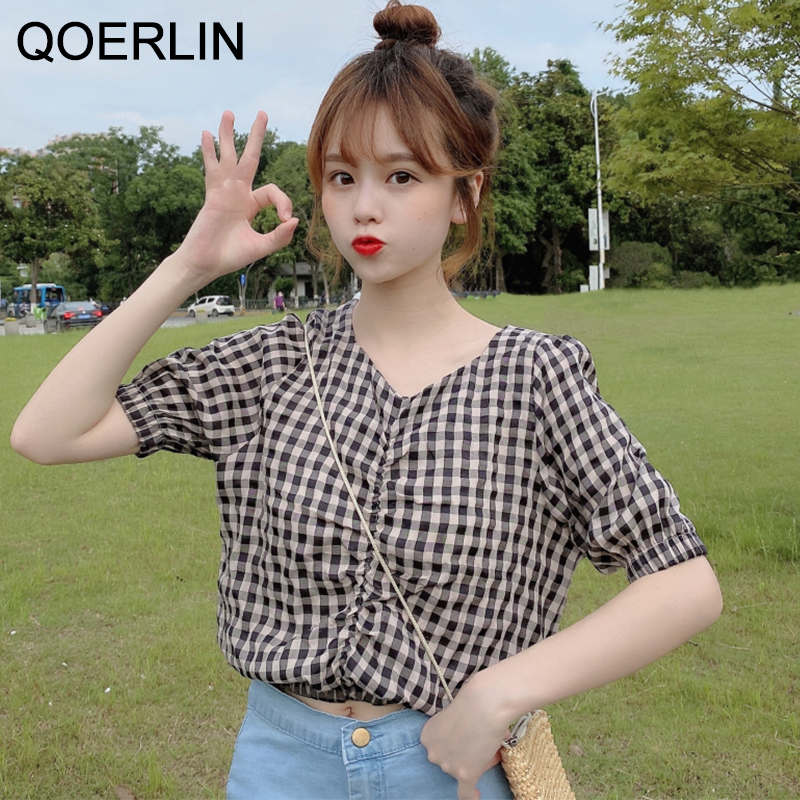 QOERLIN جديد مكتب سيدة Blusa Tops طباعة بلوزات بسيطة أنيقة الشيفون المرأة البلوزات الكورية شيك كم طويل القميص عادية M-2XL