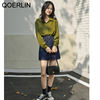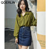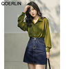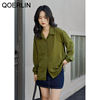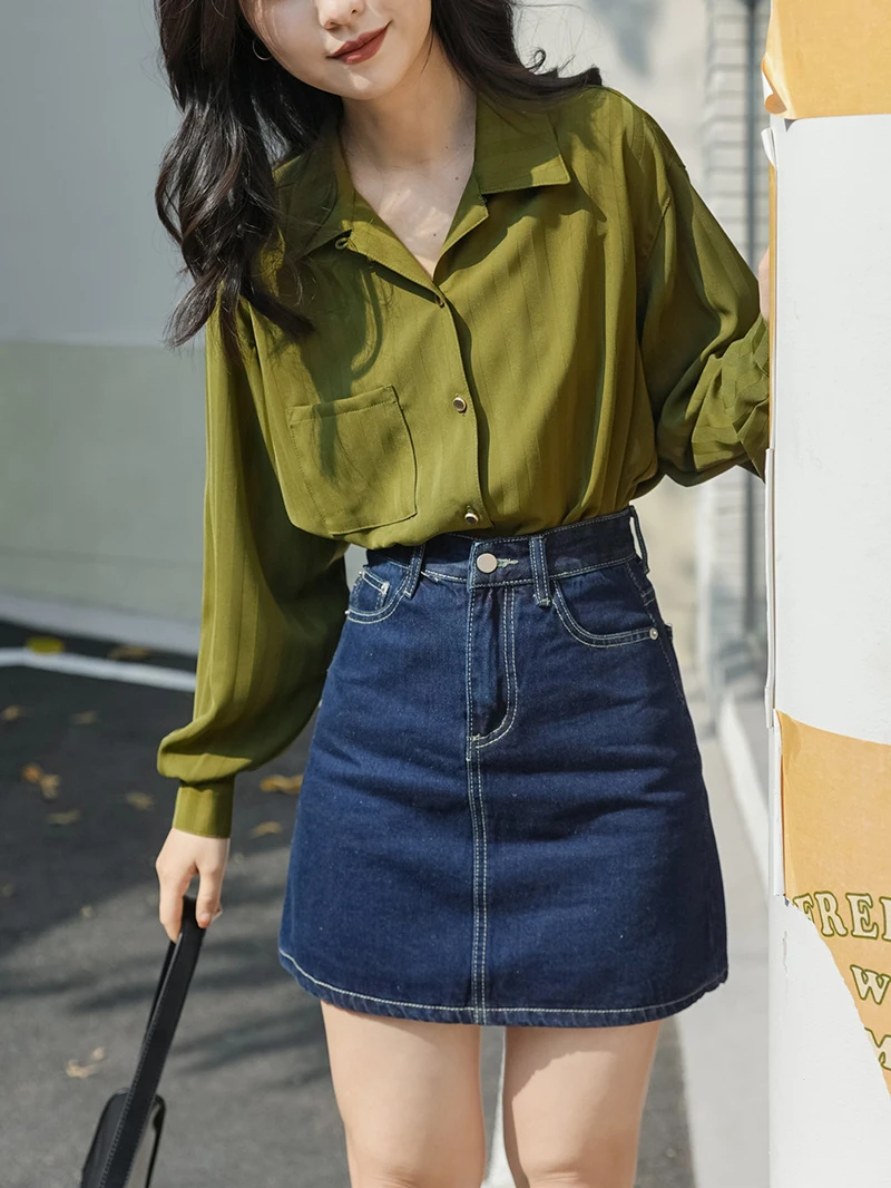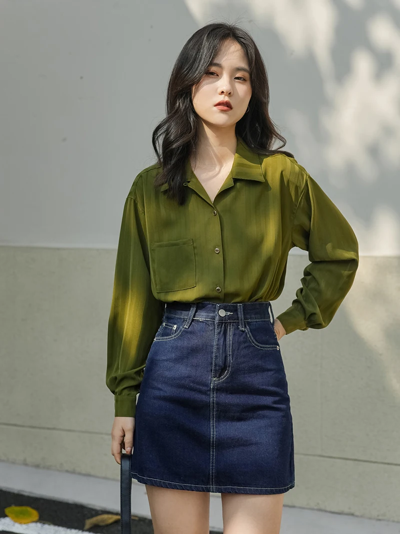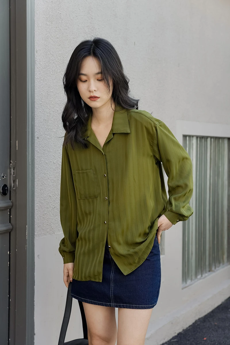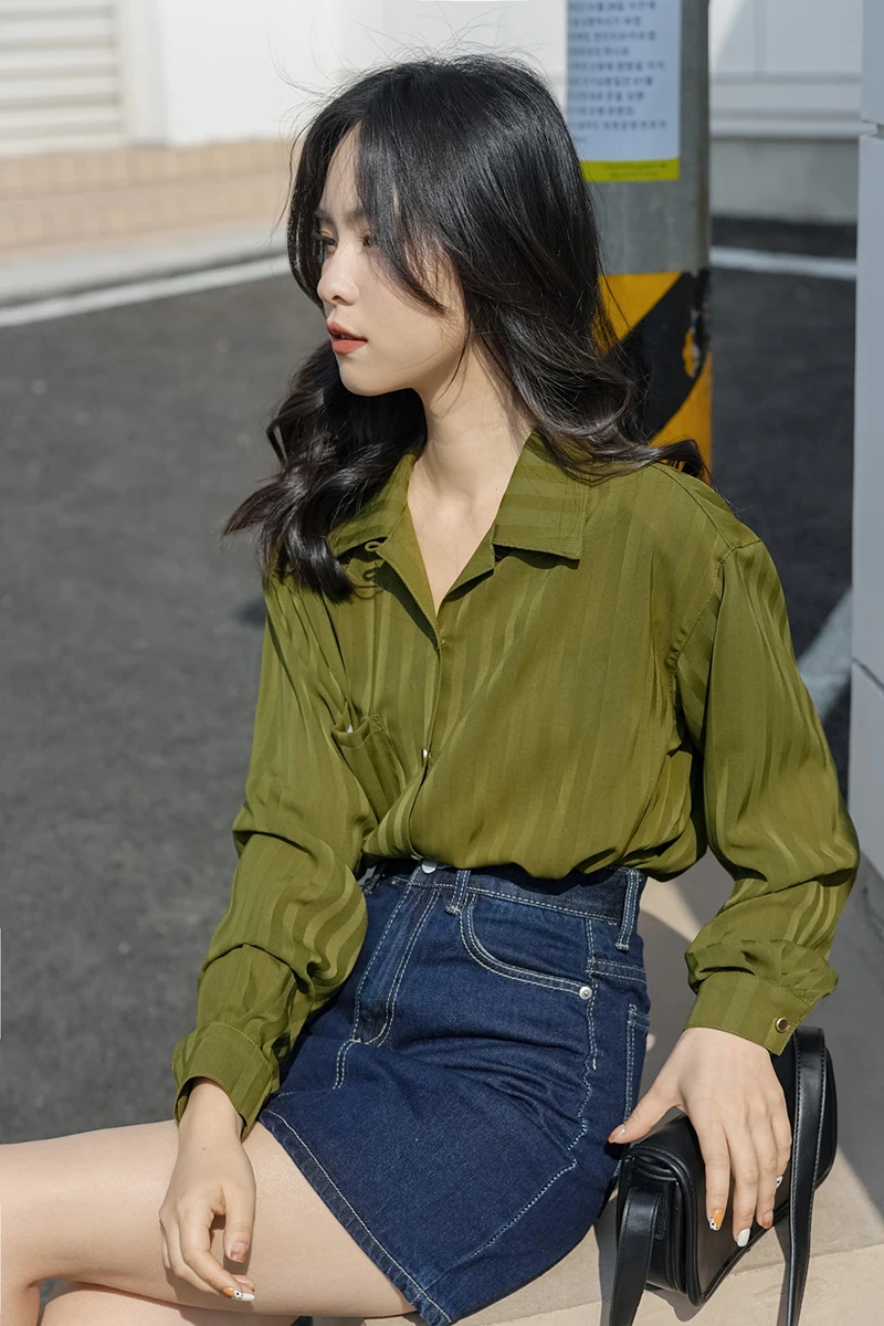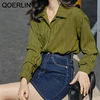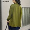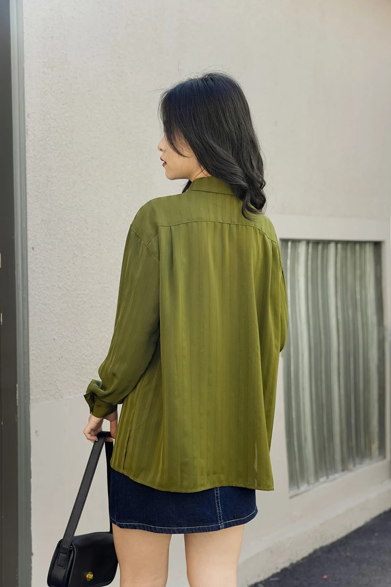 QOERLIN ريترو مخطط الأخضر بلوزة المرأة الربيع الصيف 2022 جديد طويل الأكمام زر حتى القمصان فضفاضة ملابس علوية غير رسمية السيدات