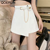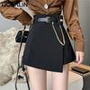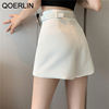 QOERLIN سراويل مربوط النساء عالية الخصر التنانير غير النظامية السراويل الإناث الدعاوى السوداء التنانير مكتب أنيق سروال نسائي قصير