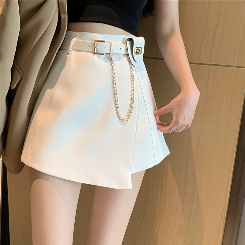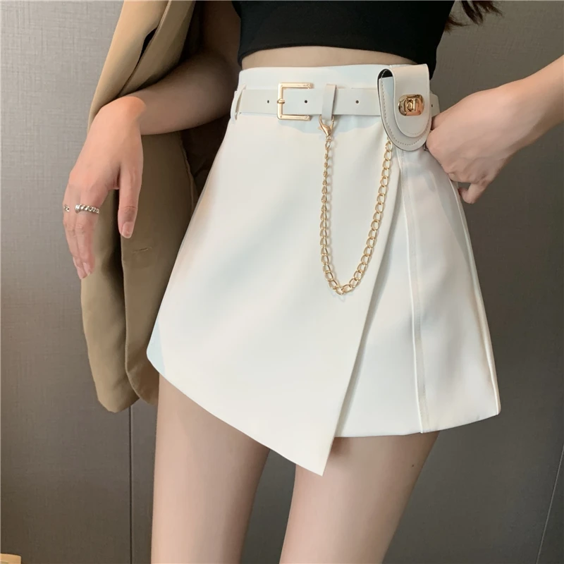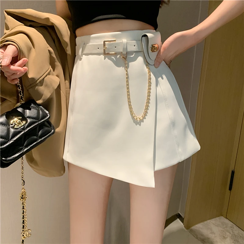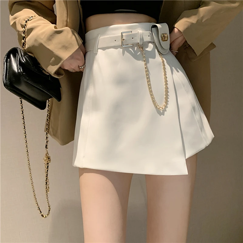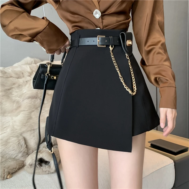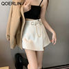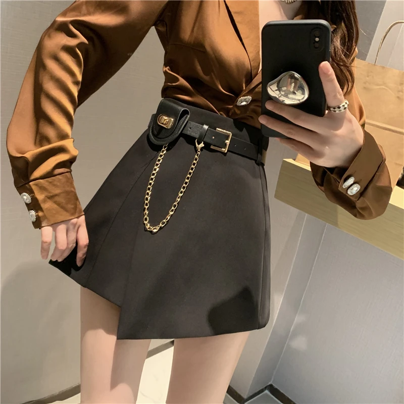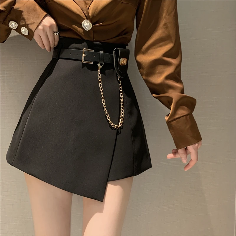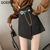 QOERLIN سراويل مربوط النساء عالية الخصر التنانير غير النظامية السراويل الإناث الدعاوى السوداء التنانير مكتب أنيق سروال نسائي قصير