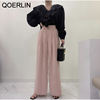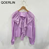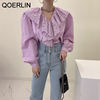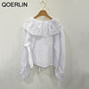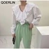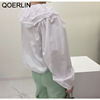 QOERLIN ملابس علوية بأكمام طويلة للربيع سترة سستة قبالة الكتف صالح سليم تانك القمم السيدات قميص أبيض أسود بلوزة قميص الإناث مثير