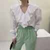 QOERLIN ملابس علوية بأكمام طويلة للربيع سترة سستة قبالة الكتف صالح سليم تانك القمم السيدات قميص أبيض أسود بلوزة قميص الإناث مثير