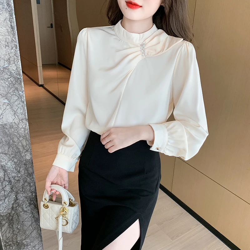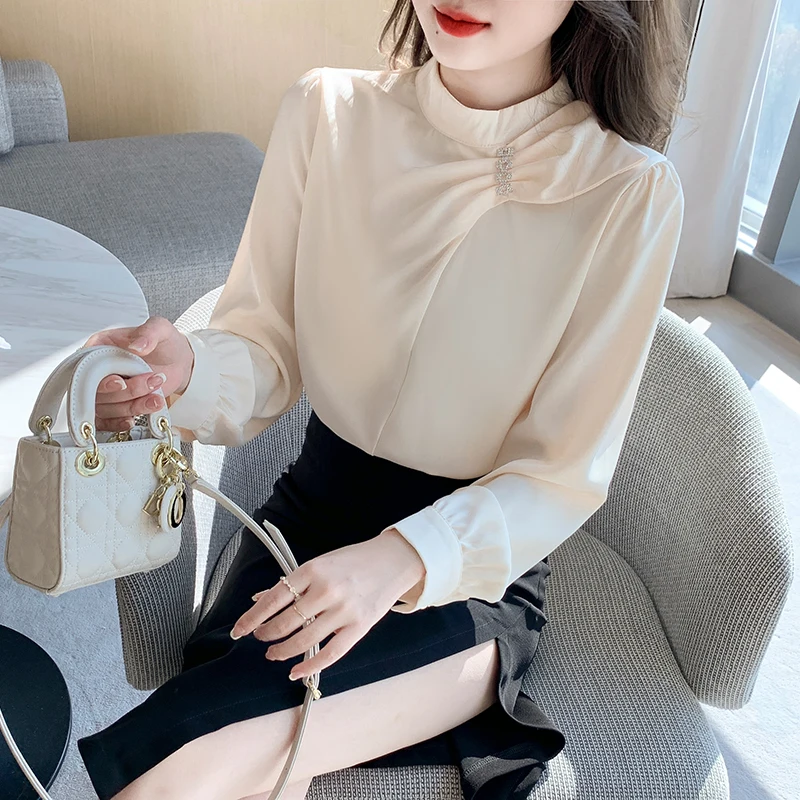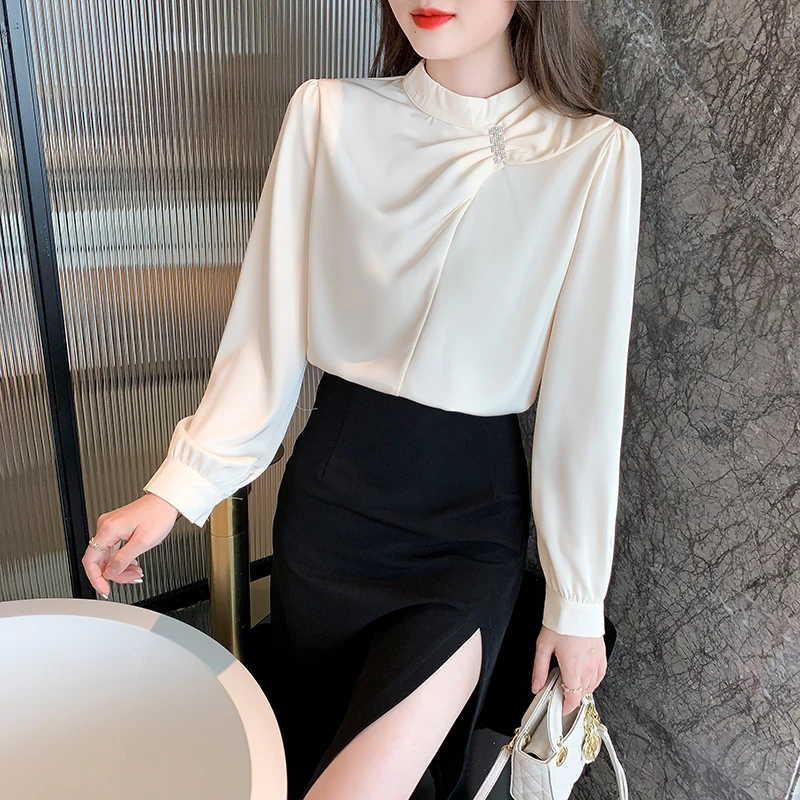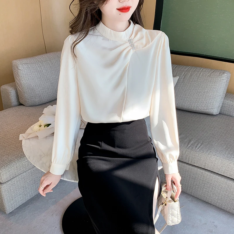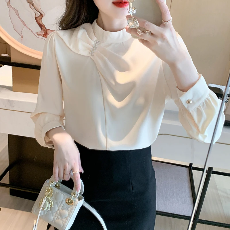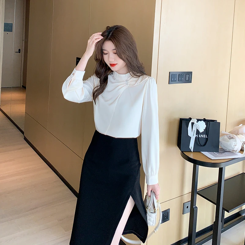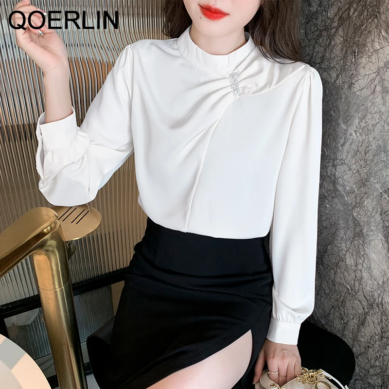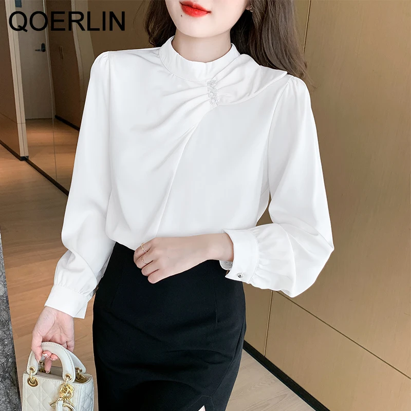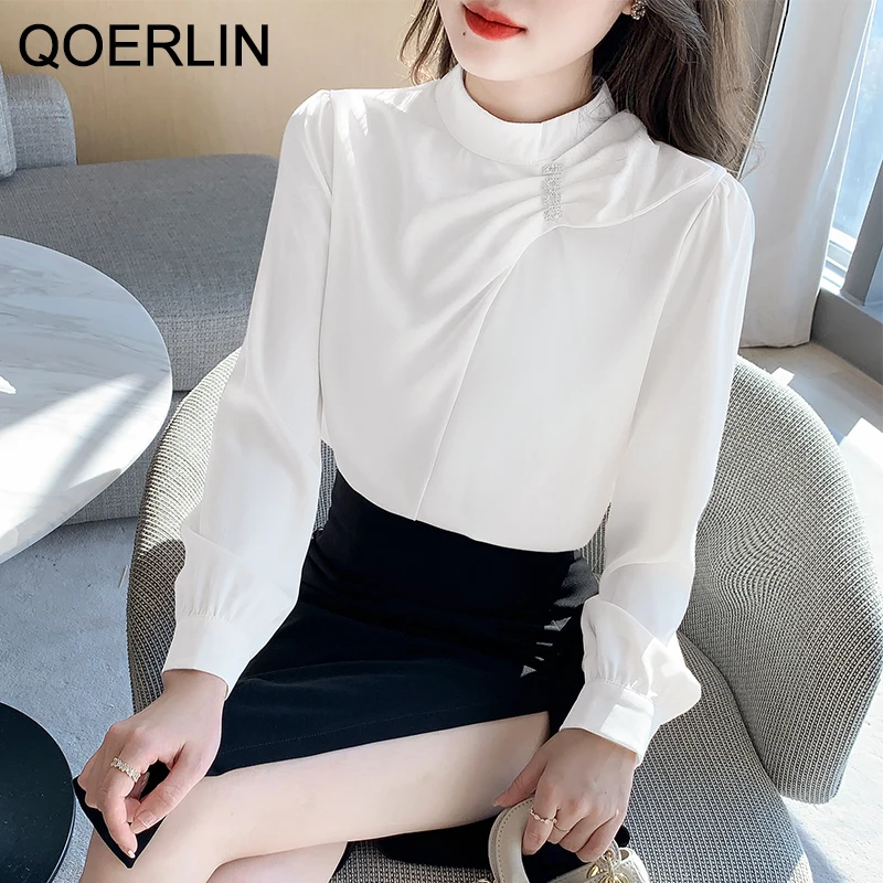 QOERLIN موضة بلوزات امرأة 2022 قميص أبيض أنيق كبير الحجم النساء البلوفرات طويلة الأكمام بلوزات OL نمط Blusa Mujer S-XL