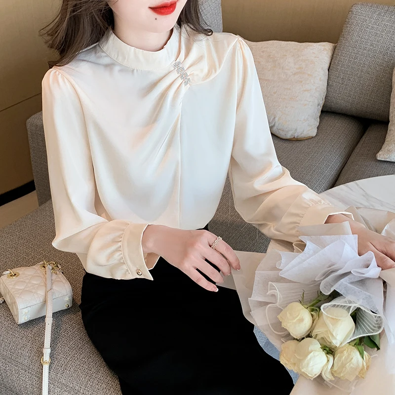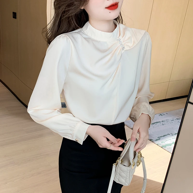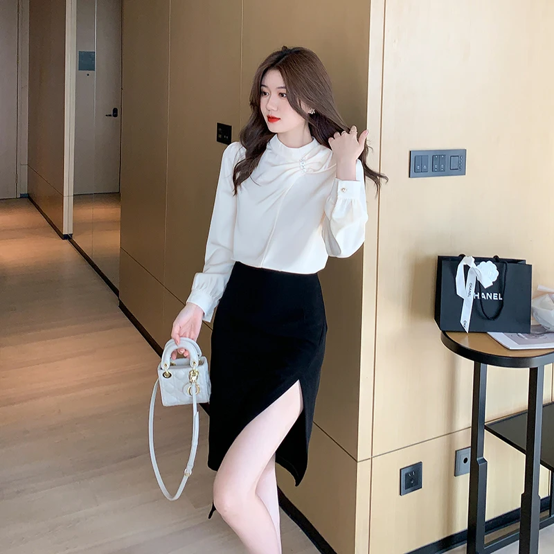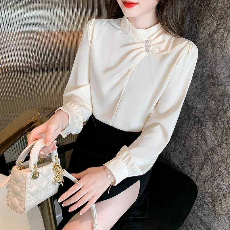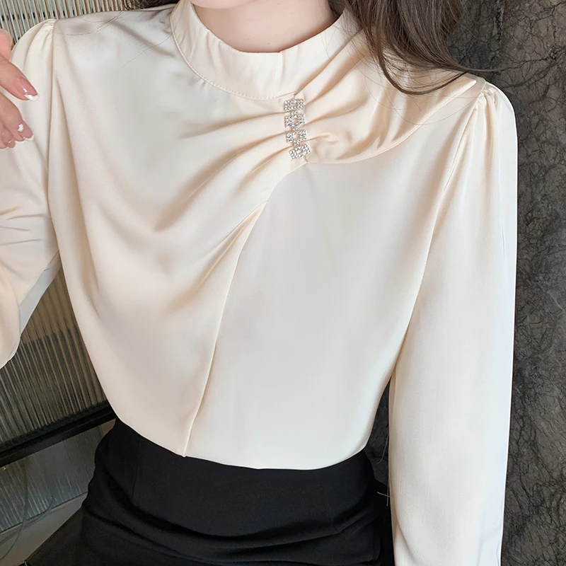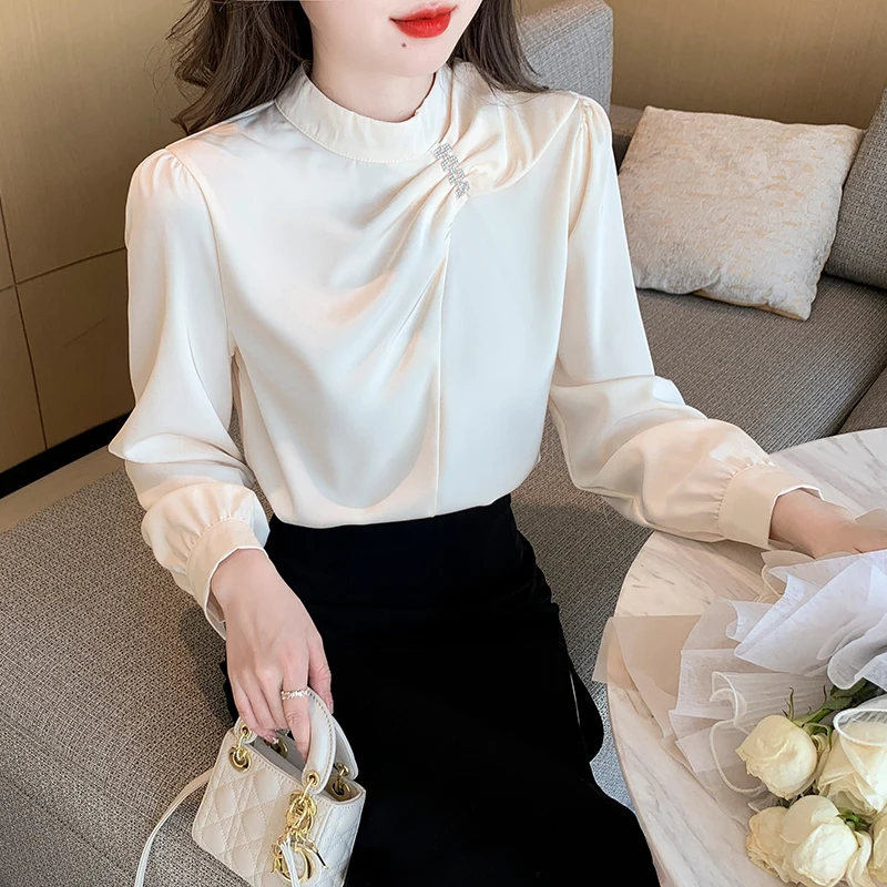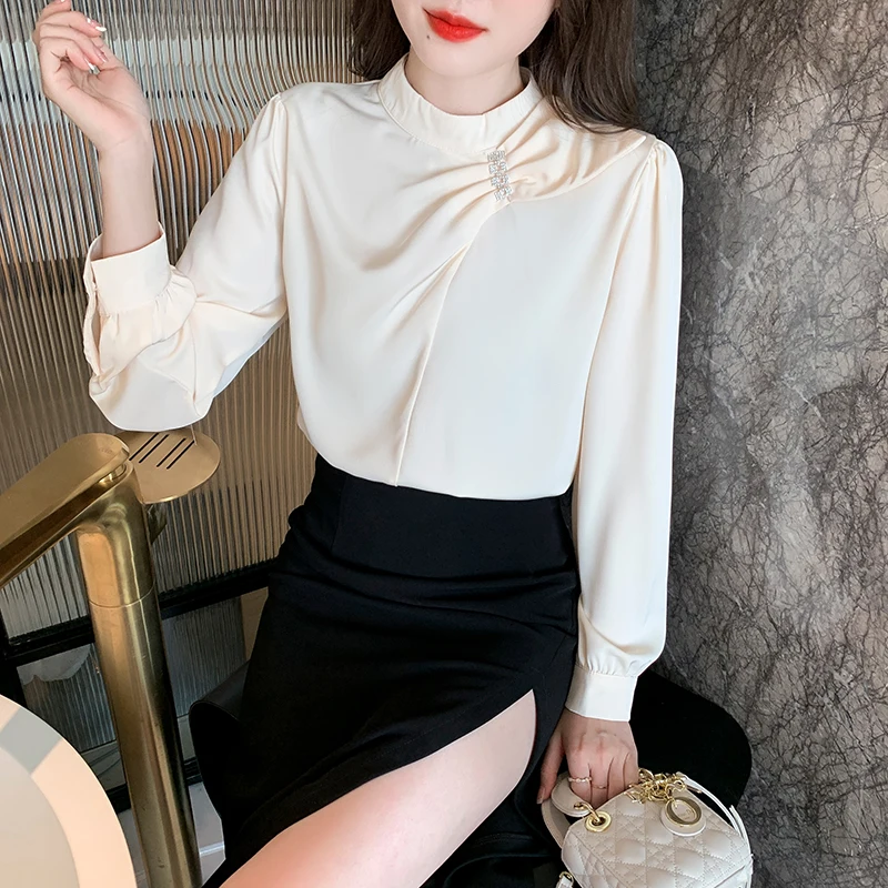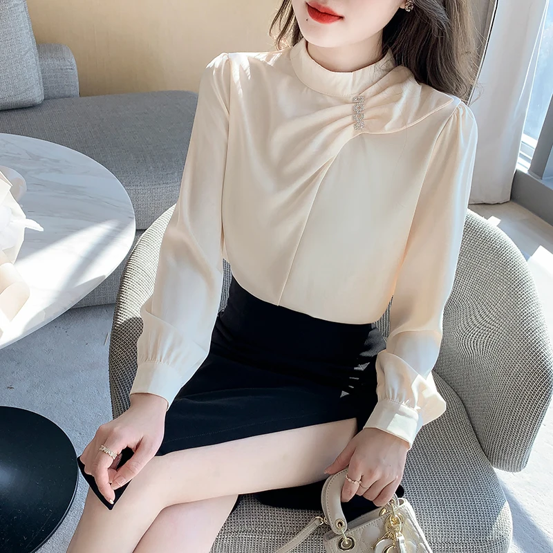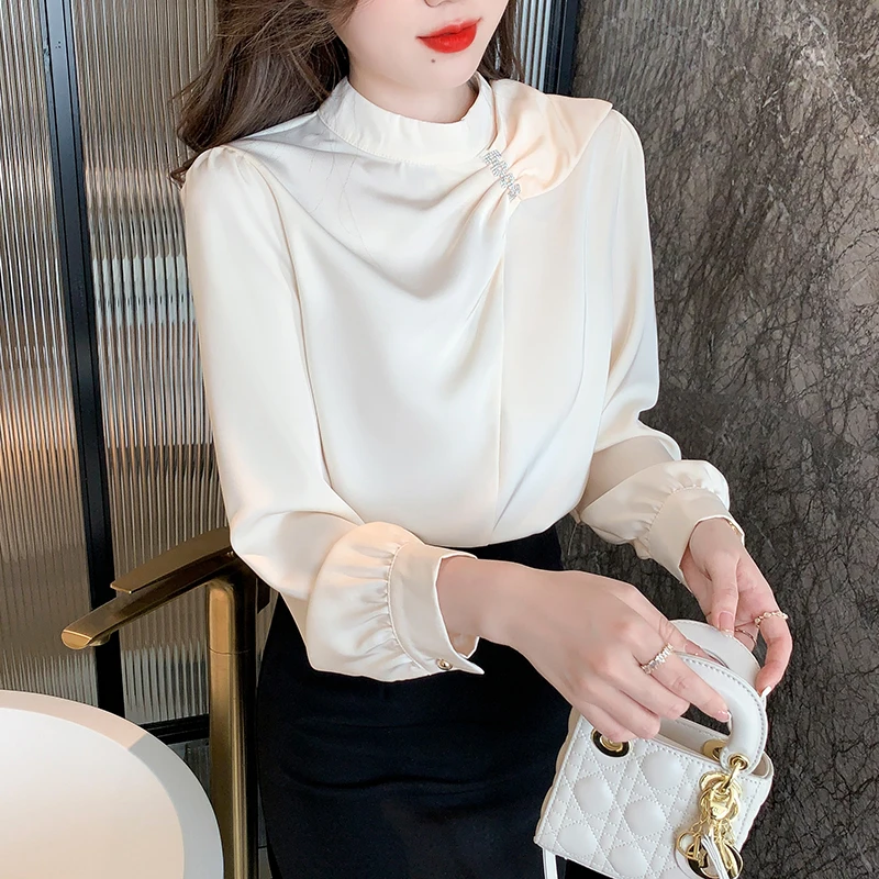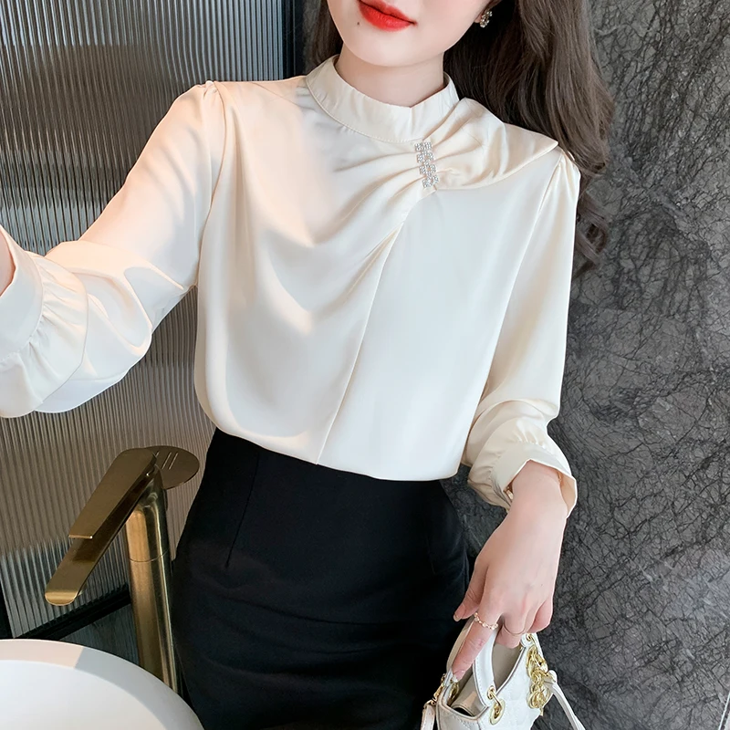QOERLIN موضة بلوزات امرأة 2022 قميص أبيض أنيق كبير الحجم النساء البلوفرات طويلة الأكمام بلوزات OL نمط Blusa Mujer S-XL